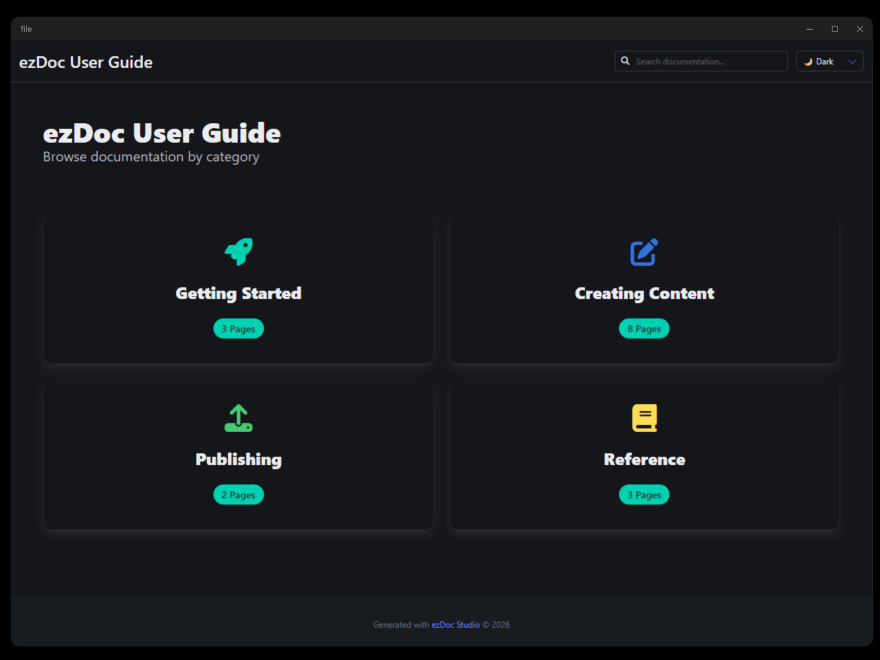 Generate HTML Documentation Instantly. Create beautiful, production-ready help sites without configuration headaches. Our Windows tool generates clean, static HTML files that you can host anywhere: drop the output into any local folder, upload to your web server, or deploy via CDN. Zero dependencies, maximum flexibility.