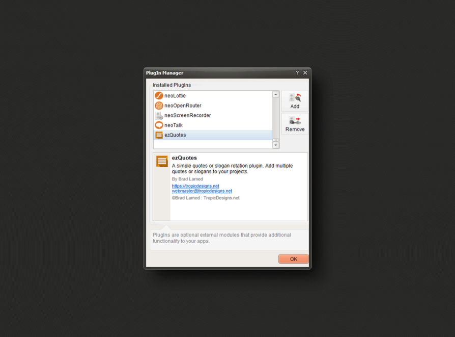 Transform your VisualNeo Web applications with this versatile plugin that displays random quotes, adding a unique and personal touch to your projects. Whether you want to inspire, inform, or entertain your users, this plugin offers a variety of customizable options and actions to perfectly match your style and needs.
